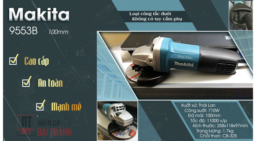 Máy mài góc Makita 9553B là loại dụng cụ được dùng rất phổ biến ở Việt Nam do tính đa dụng của nó. Những người yêu thích DIY (tự tay làm những thứ mình thích) hẳn ai cũng sở hữu ít nhất 1 máy mài trong bộ sưu tập dụng cụ DIY của mình. Khi sử dụng, bạn cần đọc kỹ hướng dẫn an toàn của nhà sản xuất.